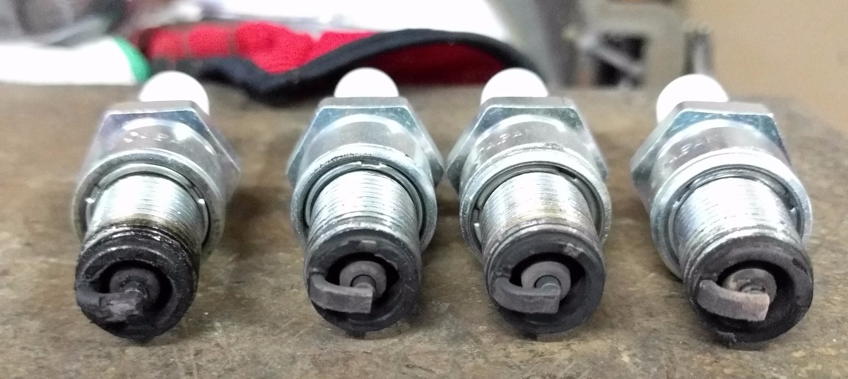 Then I tested the 155 cylinder with oil and the pressure went right up. Spark plugs however are a different story with the first one being all black and oily and the other three look pretty much the same nice and dry I have pics if you need. Are these results telling me anything useful about my engine?