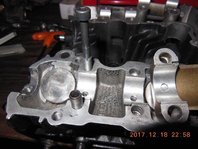 Next, the GPz head. Notice to add to the problems, many of the precision machined and critical cap 8 mm alignment dowel holes have been damaged as well. This is especially a problem on the caps that also function as the cam end thrust bearings. So we had to take stock of which dowel holes were still in good enough shape to maintain cap alignments – we needed at least two good dowel locations per cap. Thankfully, we determined that there was enough useable locations left to save the head: