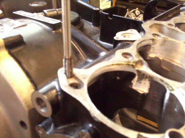 Once the head has been drilled, tapped and spot faced for the banjo there is only around 7mm of thread before it intersects with the original diagonal oil feed.