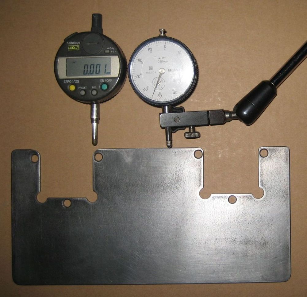 quote]This is getting pretty frustrating. Wasn't happy with the stability of the flexible dial indicator arm, so I went to work and cut a piece of steel plate to make a solid platform for the magnetic base. Then I started on the exhaust lobe again.