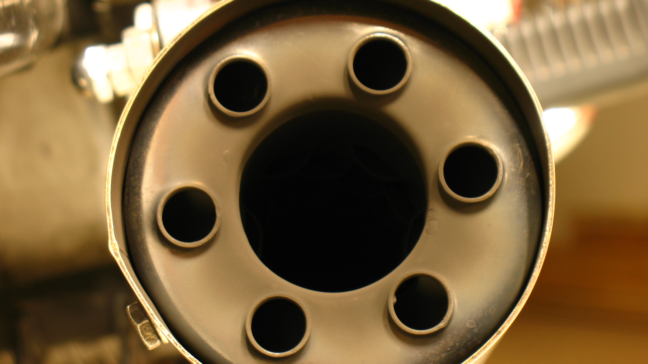 13 Oct 2018 12:20 - 13 Oct 2018 12:27old_kaw wrote: I found another baffle end pic on my phone. I knew I had taken more than just one baffle pic. There looks to be 3 dimples poking into the area where the center baffle is inserted that hold it centered opposite of the bolt end of the inner baffle, if that makes any sense? Check out the tiny weld around the rim of that megaphone.