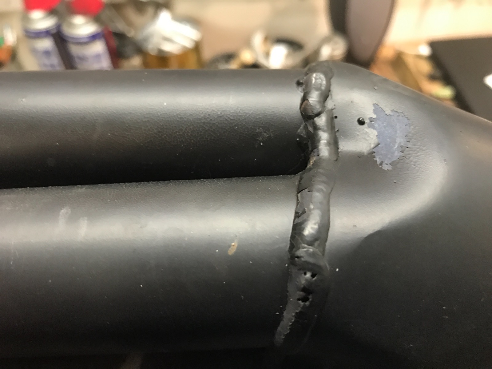 You can see the pin holes in the welds and the crazed and flaking paint.