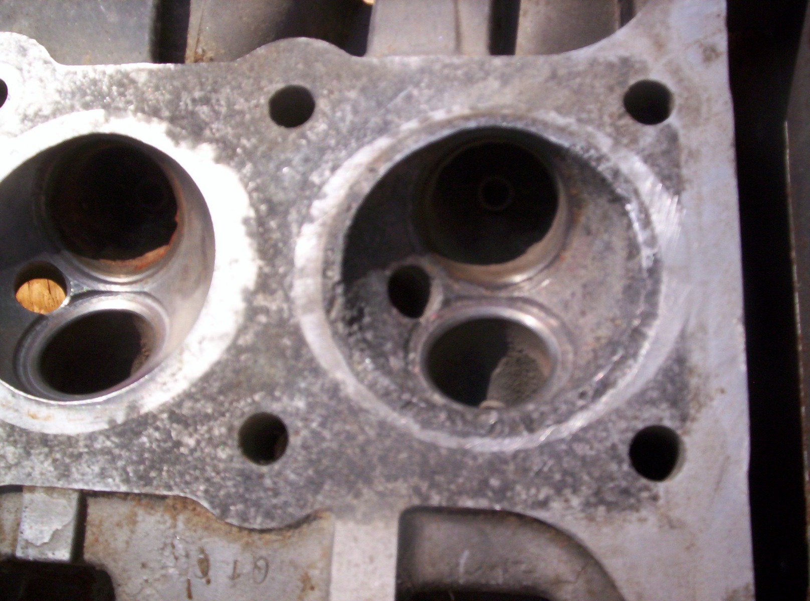 I was talking to Jeff about building up the one pitted chamber on the head I'm working on. I mentioned I had beveled the chambers on the head I have to do away with the ridge created by the larger bore and I lost some compression by doing it. He said if he built up where the chips were missing on that one cylinder I would have to CC that one chamber to match the others and possably have some warpage in the head besides if I did that to the new head, I could run this crap gas we have to use. Are you going larger bore? If so that might be your answer.