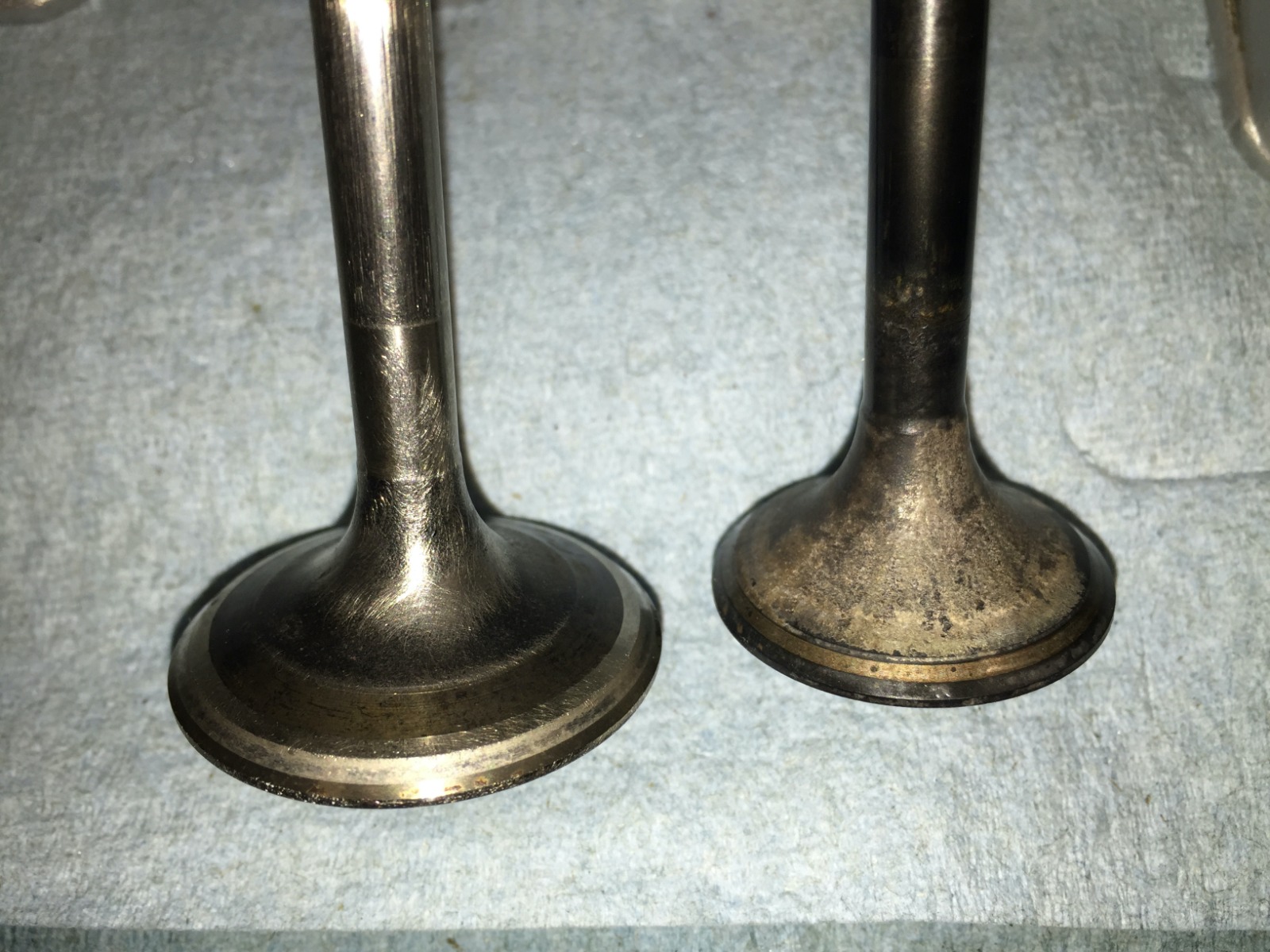 On the valves you can see the different angles as well as the final lapped portion from when the head was new. Valves still need some more cleaning.