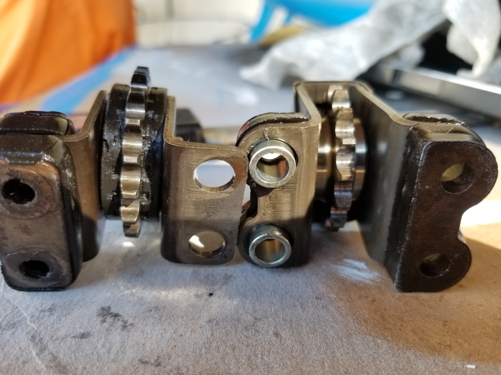 Quite an interesting subject here. I replaced all the timing chain gears on mine with Liska components when I did the engine work. It never crossed my mind that a part from another bike might work and save me some substantial cash which is a good thing unless you are going to run the bike hard. If the two bikes being discussed here run the same size timing chain then the gear tooth pitch should be the same correct? At that point it becomes an issue of bracket dimensions. If the brackets are pretty close in size the chain adjuster should be able to compensate for the size difference up to a point. What intrigues me is the possibility of switching out the Suzuki gear and installing a new shaft into my old Kawasaki bracket if the sizes are the same. I have a bolt holding my old OEM gear in place so it would be no big deal to make the swap. I don't know if I would want to install the Suzuki bracket and idler after reaming out the bolt holes though. A bit risky for my liking.