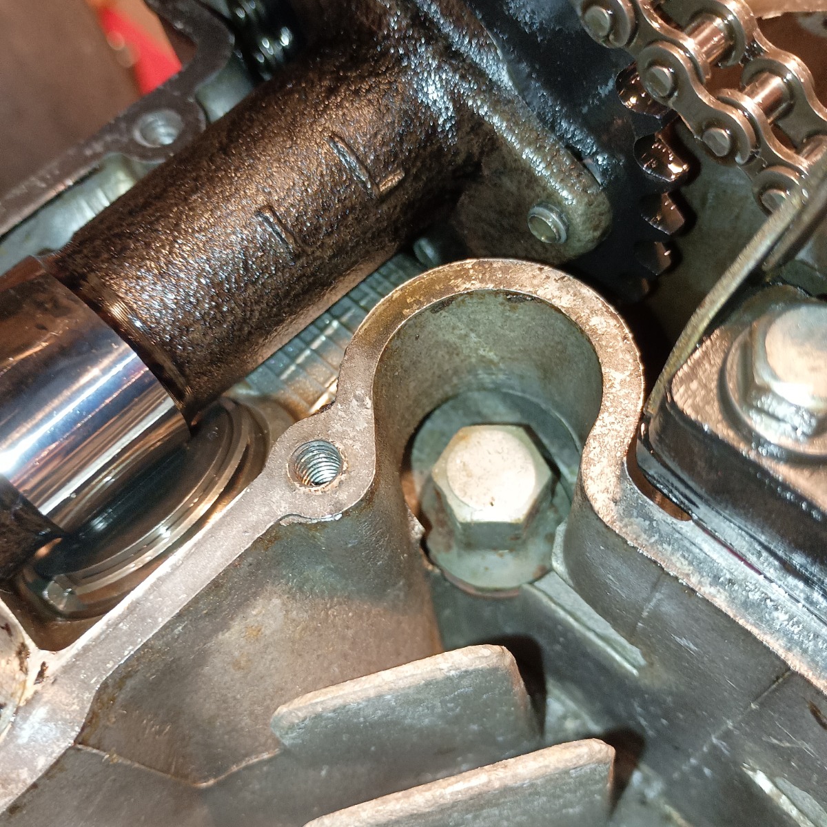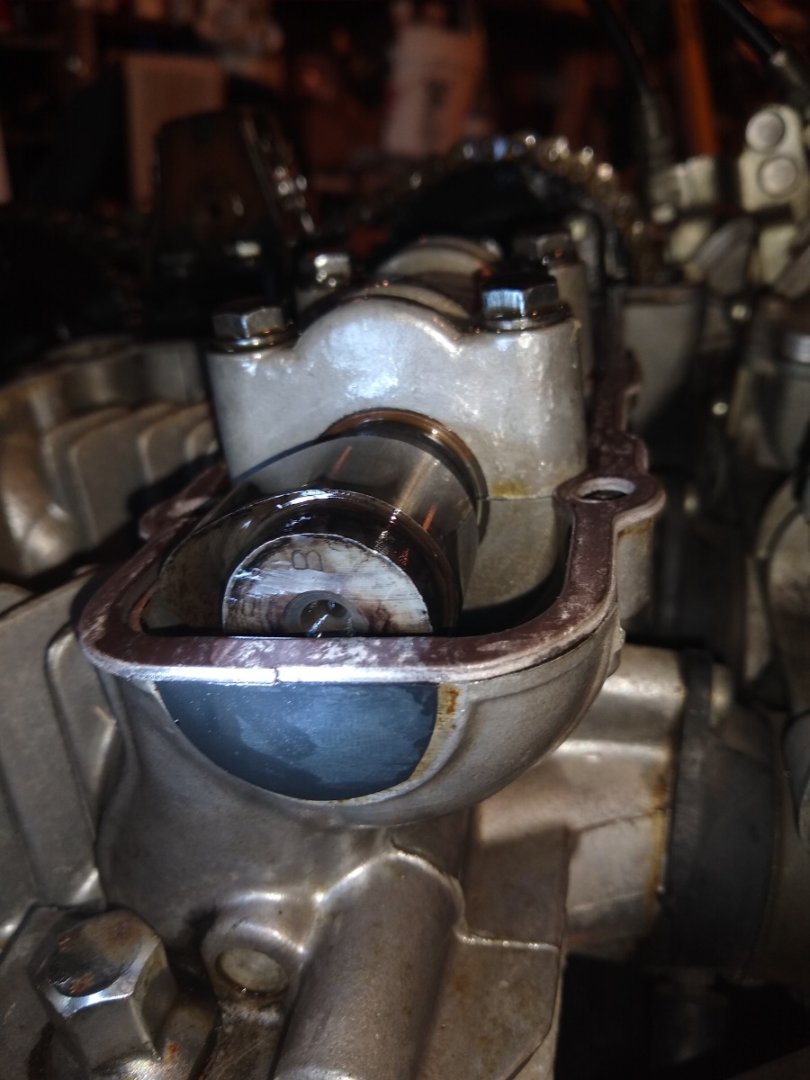 He told me it had a"performance cam"...i asked him "both?" And he looked kinda puzzled and said "yeah". So i just dismissed it . I got i home and replaced all the fluids and rebuilt the carbs and it fired up. Ive only put about 2k miles on it, because i usually zip around on the 650. So yesterday i pulled the valve cover to replace the leaking end plugs/gasket and check the valve clearance (all within spec). I should have taken more pictures, but when i was in there i was reminded of the guy telling me the cam had been replaced .. These pictures are rubbish, but can anyone tell me if they are stock cams?