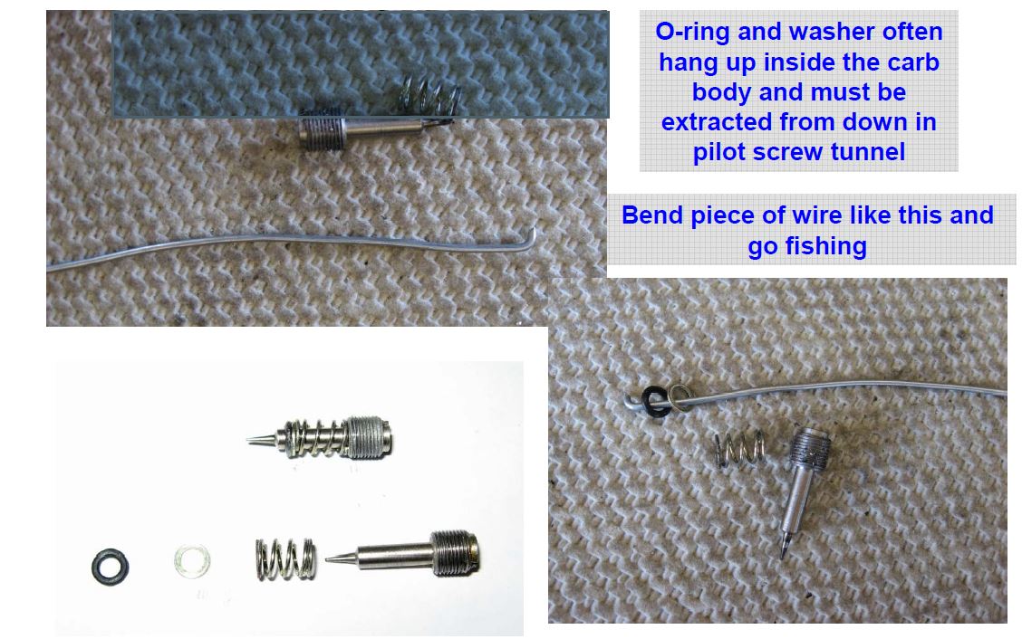 Thanks guys, I bought a repair kit and removed the plugs, replaced the o-ring, washer, spring and screw. Hooked it all up and now when I start it, it starts instantly and jumps fast to 6k rpm in a sec so I kill it, adjust the screws and the idle adjustment and still jumps fast up. Any ideas on what I might have done