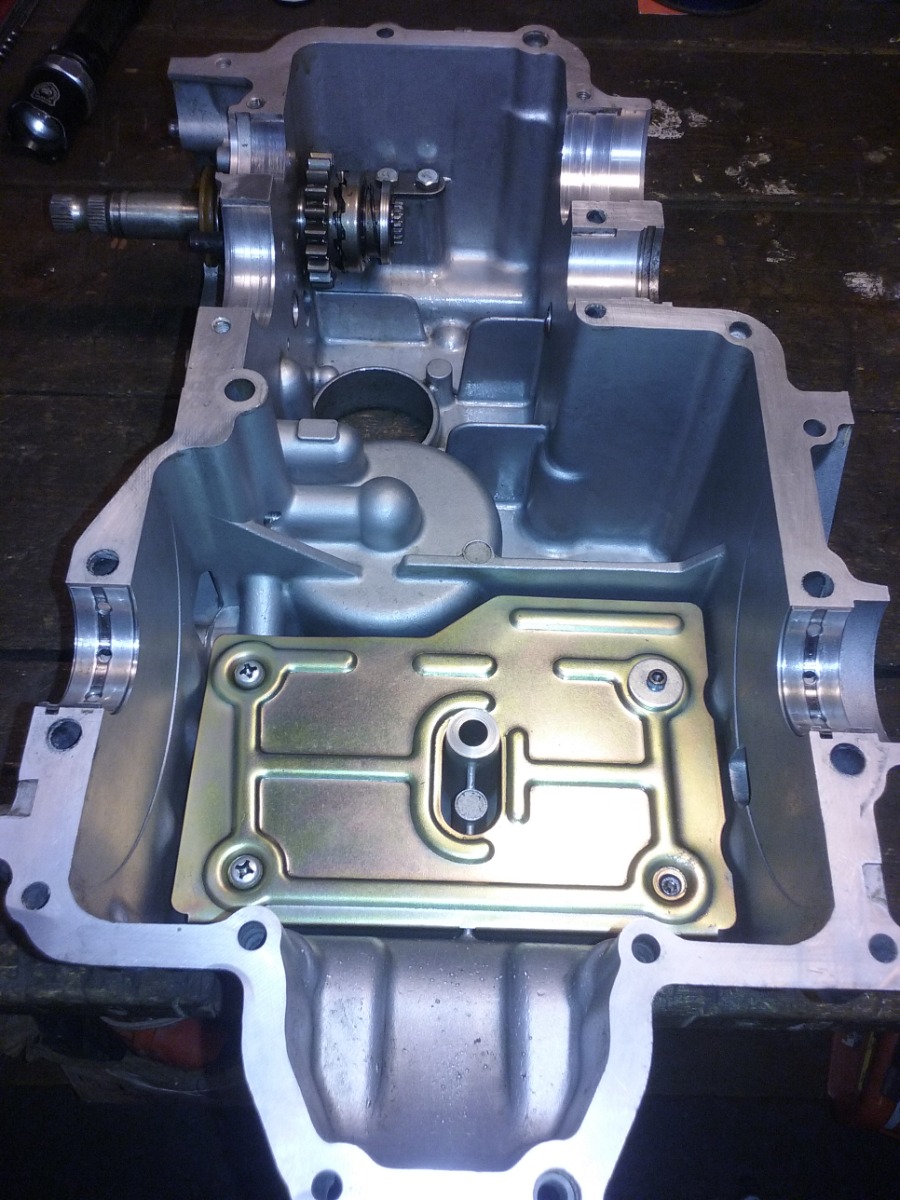 But the only problem I have right now is getting to the master link...I can rotate the kickstarter but it doesn't seem to be attached to the crank! It doesn't catch on anything, just seems to rotate through ... Am I missing something obvious here? I'm currently trying to get the right side cover off; all the bolts are out but she doesn't want to give it up off of that stubborn seal the kickstarter shaft goes through...