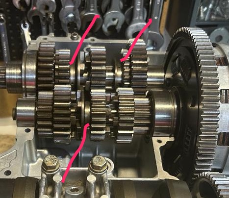 The pegs on the forks do need to be engaged with the shift drum when you assemble, also see below for the locations the forks need to engage with
