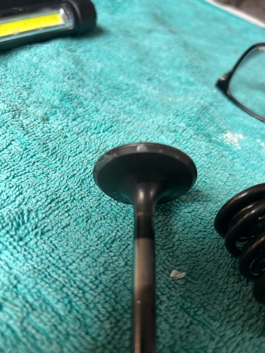 Next will be to focus on the head. I did a wire brush clean of the valves, and all cleaned up nicely, except the ones corresponding to the "holed" piston (If you look at the initial pictures, you will see I had a piston hole). I am planning, of course, on lapping all valves, and I believe they will end up OK; but would like to share this with the group´s knowledge. I´m ready to order some ZPower parts, so a new set of valves for this piston, is easy to get (all other valves are perfect).