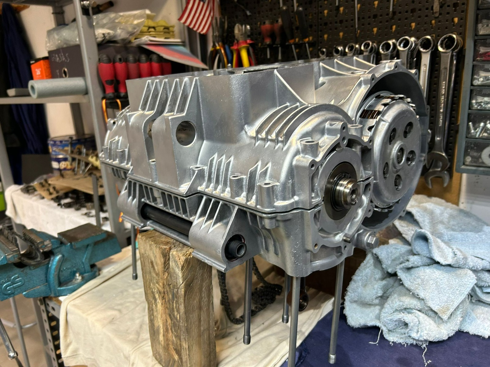 OK! So work has been crazy over the last months, and it was not until yesterday I could resume work on the Kz. I just got both halves together, and got the bottom bolts tightened to spec as per the manual.