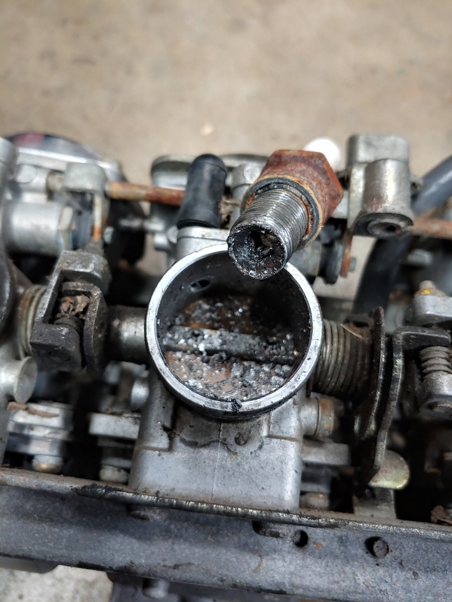 When you find aluminum shavings in the intake port and inside the throat of the carb, your motor definitely dropped a valve.
