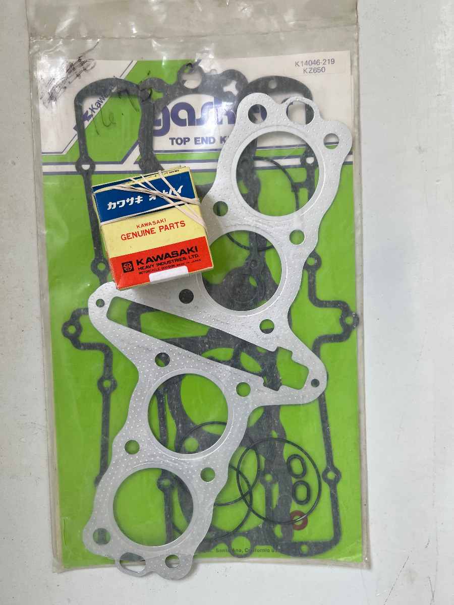 One comment, that gasket kit was sold by Kawasaki, but it's not OEM. It's an aftermarket kit sold by Kawasaki MANY years ago. I bought a similar kit for my KZ750 and all the gaskets were dry rotted and cracked as soon as I touched them. The head gasket may be okay, but at minimum, get a fresh base gasket, and all the various O-rings.