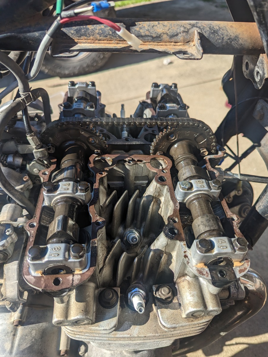 The issues I had when I put everything together were pretty apparent as I got further into it. Right off of the bat, I noticed I had to give a lot of throttle to keep the bike from stalling as I let out on the clutch in first gear. Once it was moving, it was fine. Then, I noticed that the exhaust pipes for cylinders 3&4 were barely heating up, and never got around to properly diagnosing it before life happened.