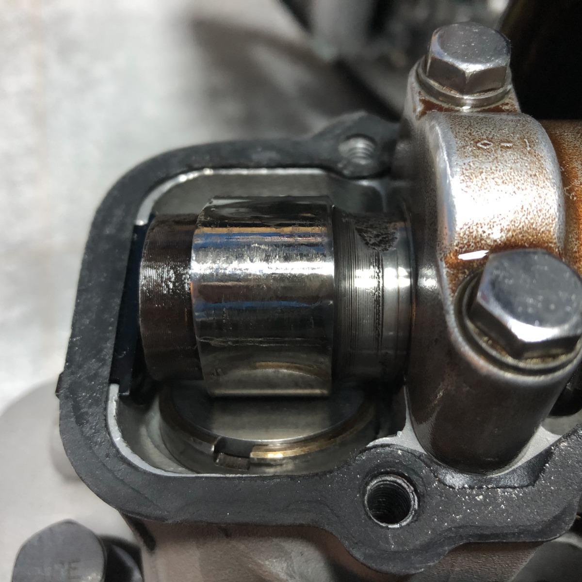 After 250 kilometers I wanted to check the valve clearance, and found that almost all but three shims were damaged.