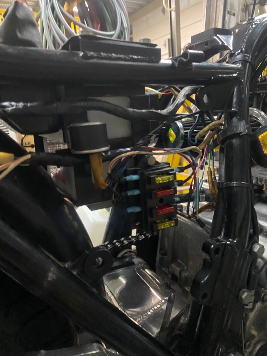 Hi Wookie, so I got a relay and did this wiring change and now getting good voltage to my coils. Ran the bike up today and noticed a couple things. The bike has trouble when cold, the idle is low and it stalls out without throttle, once it is warm it fires up right away, idle increases and seems to cough back through the carbs much less. I also noticed that I can see air entering my fuel line backwards from the carburetors. How can this be? I checked the vent line and it is clear. Again spraying starter fluid on the boots and also the choke plunger assemblies made no difference to idle. Checked with timing light and I am bang on and the advancer seems to be moving freely.