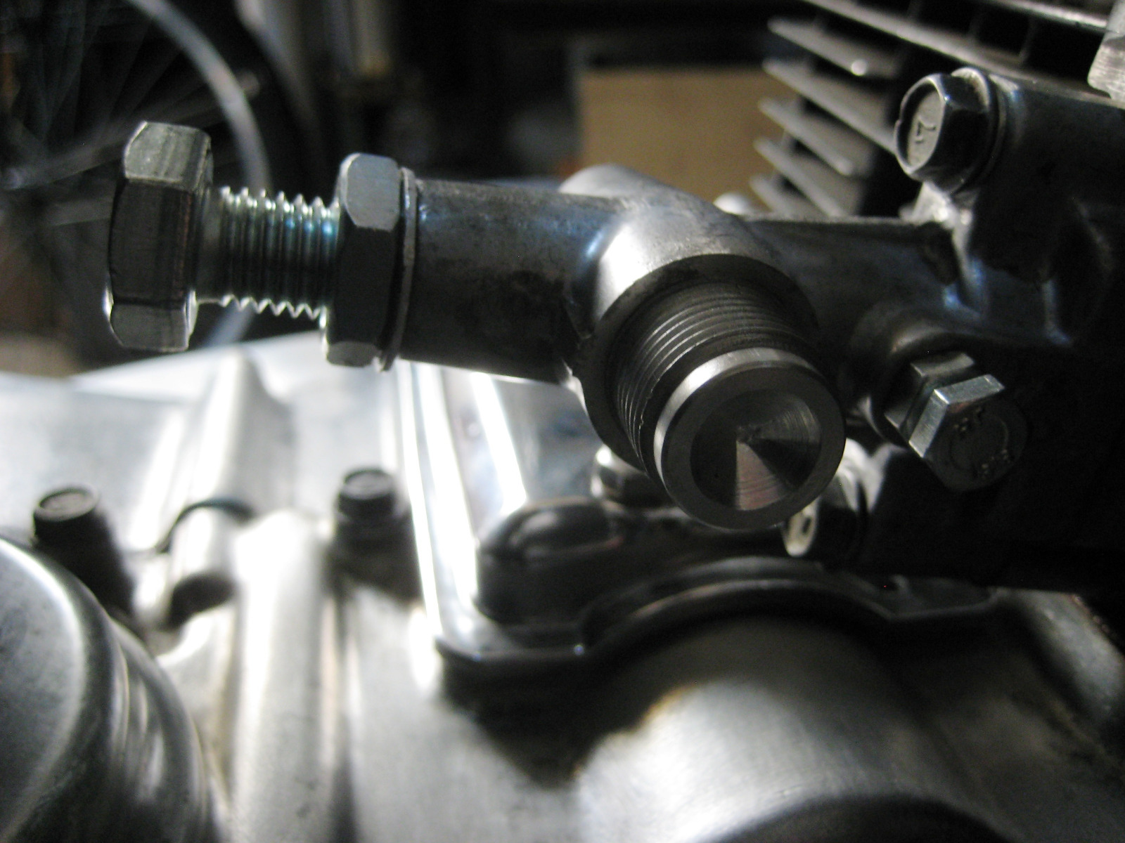 ....The aftermarket manual tensioner makes maintenance of the top end a breeze..... as is very easy to loosen or tightening,...and also I can change anything on the carburators bottom w/out removing them from engine....... but that hard metal tip makes the guide distort, instead of the soft tip of the stock tensioner. Wish they had a soft tip as the stock ones, ,,,,and looking at your picture makes me decide going back to stock..