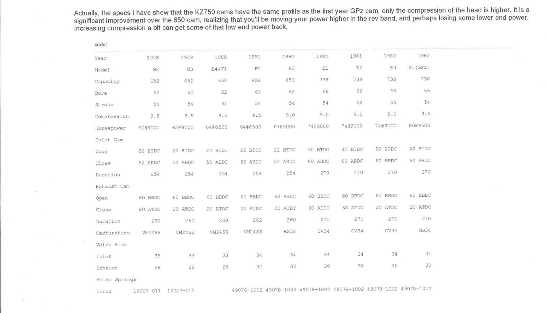 Interesting Facts, Re Head swapping z750 heads/cams/stuff