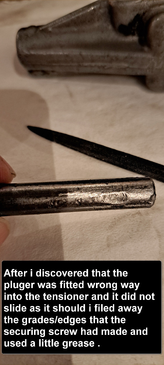 .Maybe not so interesting ,but think i found out why the camchain tensioner acting like it did not work right earlier when tried to set the timing. The problem then was that the chain was too lose.The coned plunger was placed wrong way inside the tensioner .That made it stick