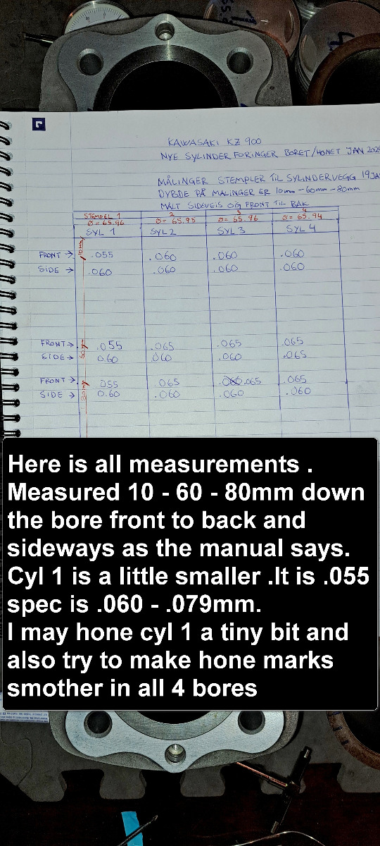 I will measure the bores again with the boredial gauge more later.It may not be 100% calibrated and yesterday i found cyl 2 was out of round by 0.002mm .And that cyl 4 had only 0.030mm clearance and 1-2-3 had clearances around 0.050mm.