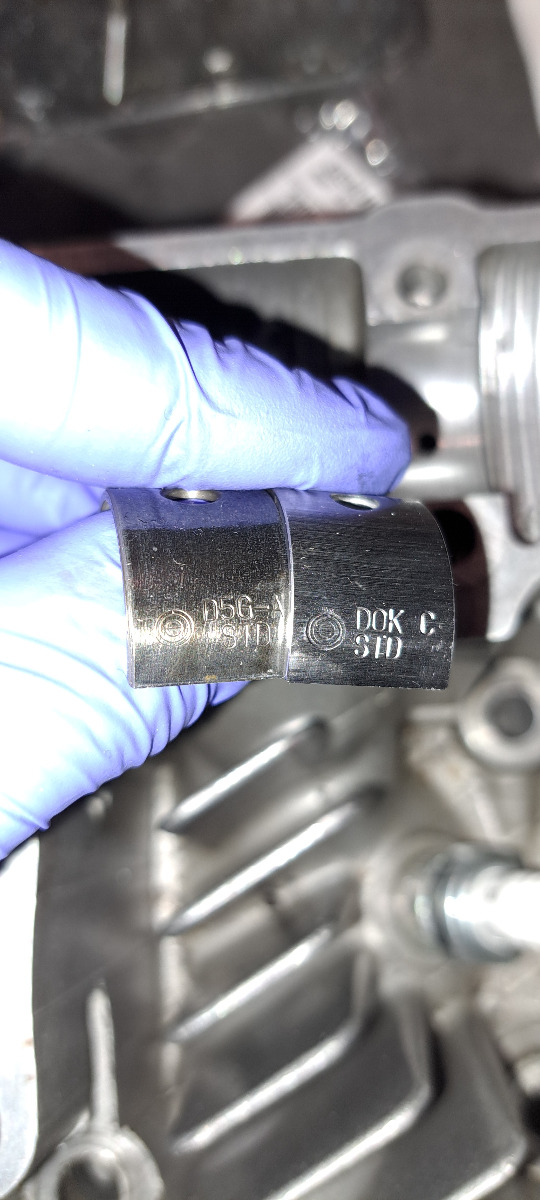 Just fond another bearing shell from the new i bought marked D0D -B std .Just now i have installed intake cam to bench shim the valves.I used assembly lube on everything , but It feels like it is grinding a little when i turn it