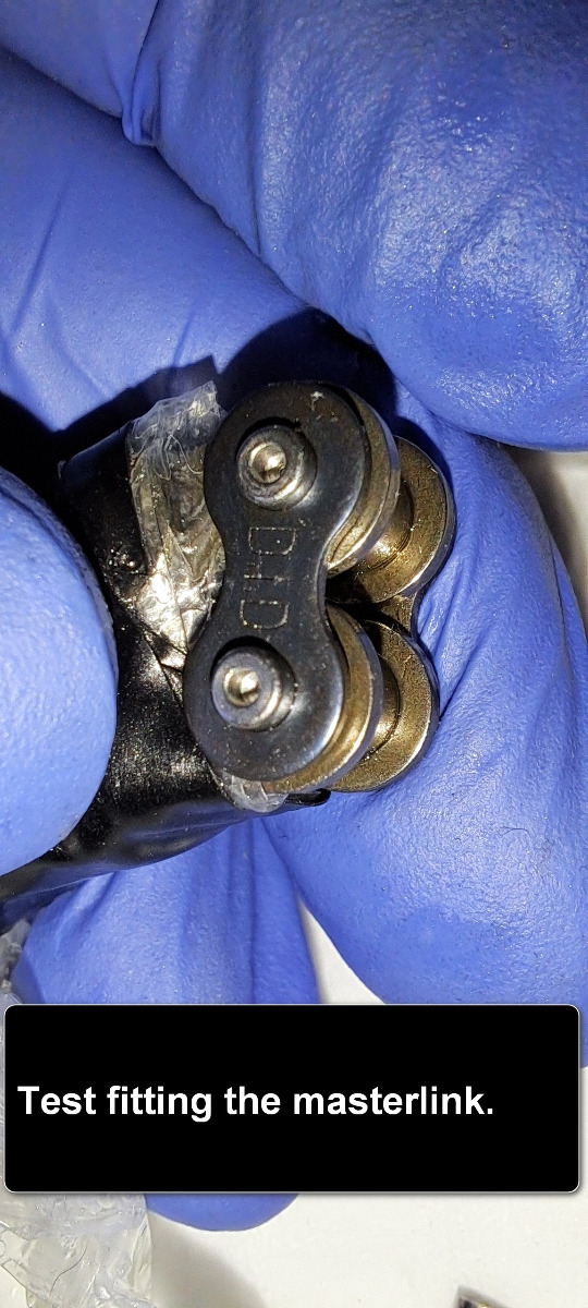 I started to prepare the new camchain that i bought from z power uk.It is endless and i think it was included in the camchainrollersprocket and sliders kit if i remember right.I bought a masterlink because will have to split the chain.I use a cheap chainbreaker kit bought from ebay some years ago.