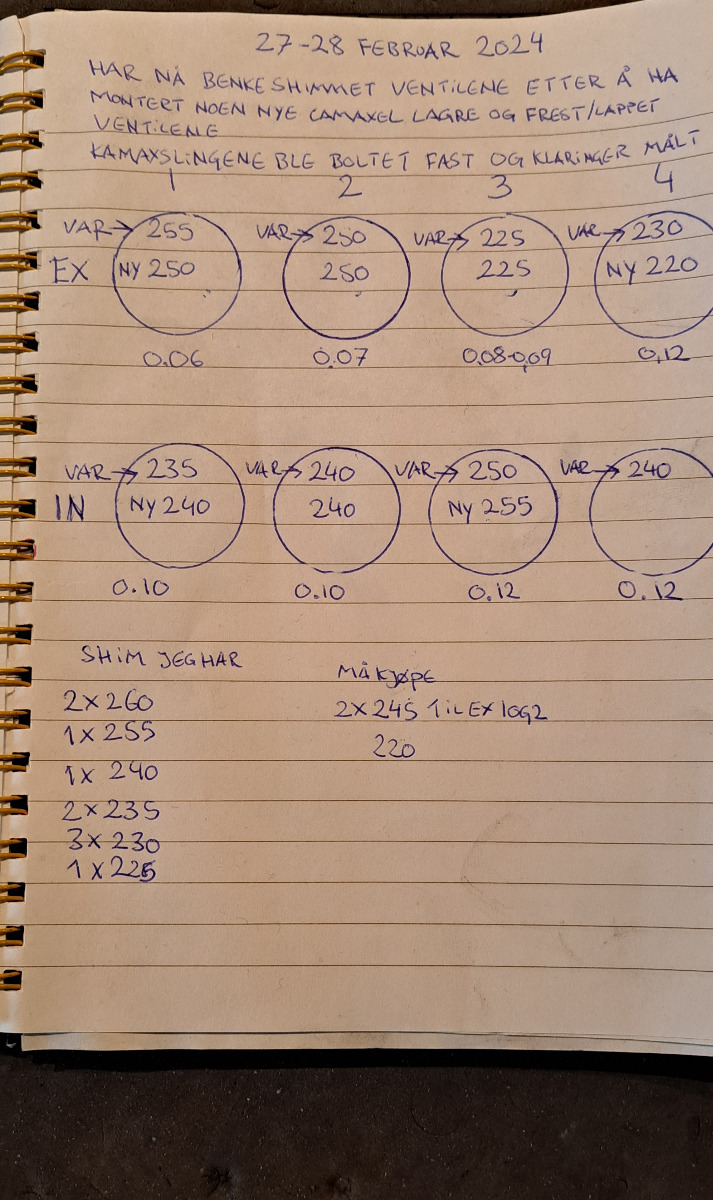 14 Mar 2024 15:42I don't know how i missed this but if you are in the low 200's on those shims you really need to tip the affected valves.Thanks asphalt900 for the tip. I use the valves that was in the engine not sure they are oem but i think so. I did not have to grind any of the valvestem ends to fit shims into the 2 valves that had zero clearance .The smallest shim that is installed now after adjustments is 220 so that is good.