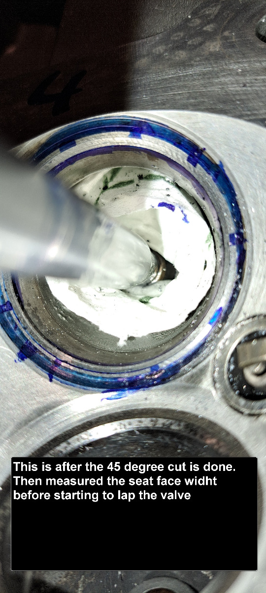 Been doing some more on the head .The valveseats was worce than i first thaught so had to cut them so far only done intake 1 and 4. Also done some more measurements and it looks promising .I thaugt the inner diameter of the valveguide was out of spec after the wobbletest of the valves ,but after using a boreguide in them theuy are all inside spec so will not replace the valveguides. The cylinderbores has some skratches but will post about that later.
