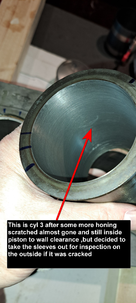 to piston clearance spec.Then i desided to take the sleeves out to be 100% sure they are not cracked.