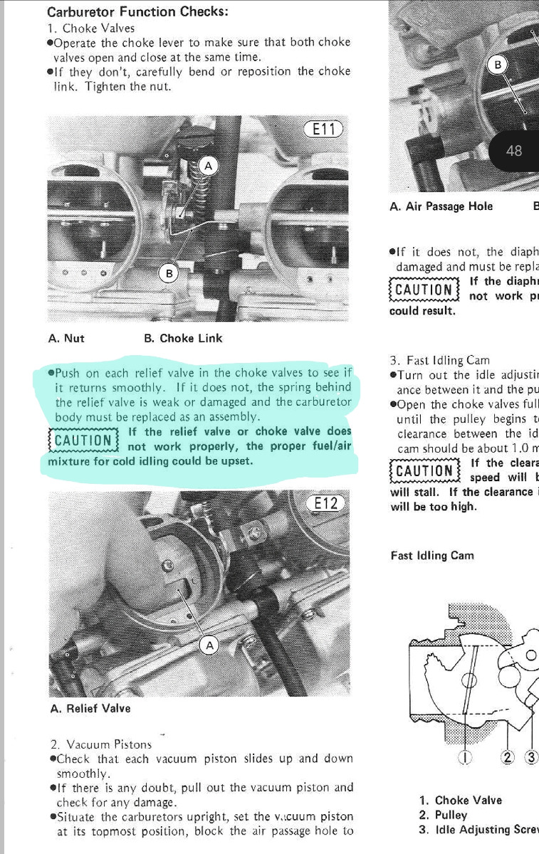 08 Sep 2023 06:00Running the float level 6mm too high is obviously compensating for something else (must be close to flooding) I suspect you have air leak issues (hardened boots etc) when the choke flaps are closed and the air speed is reduced the engine relies in vacum to create a "negative depression" and pull fuel out of the carbs. Any vacum leak would reduce the bikes ability to draw fuel. Once the choke is open the increased air speed draws the fuel out of the carbs (negligable vacum with an open throttle)Over the past 4 days, I have now cold started the kz305 in the mornings with the fuel hight 3mm above the float bowl gasket and it started and idled great. Almost no cranking, just hit the starter button, and it fired right up.