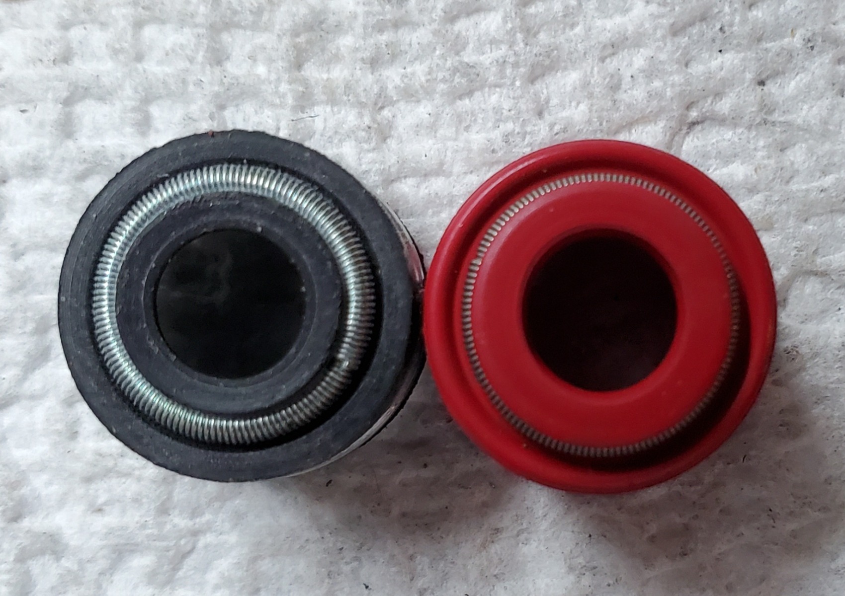 When I place them side by side, the rubber seals have a visually smaller top opening than the Viton ones. It mics out to about .013 of an inch (as accurately as you can mic a rubber seal opening).