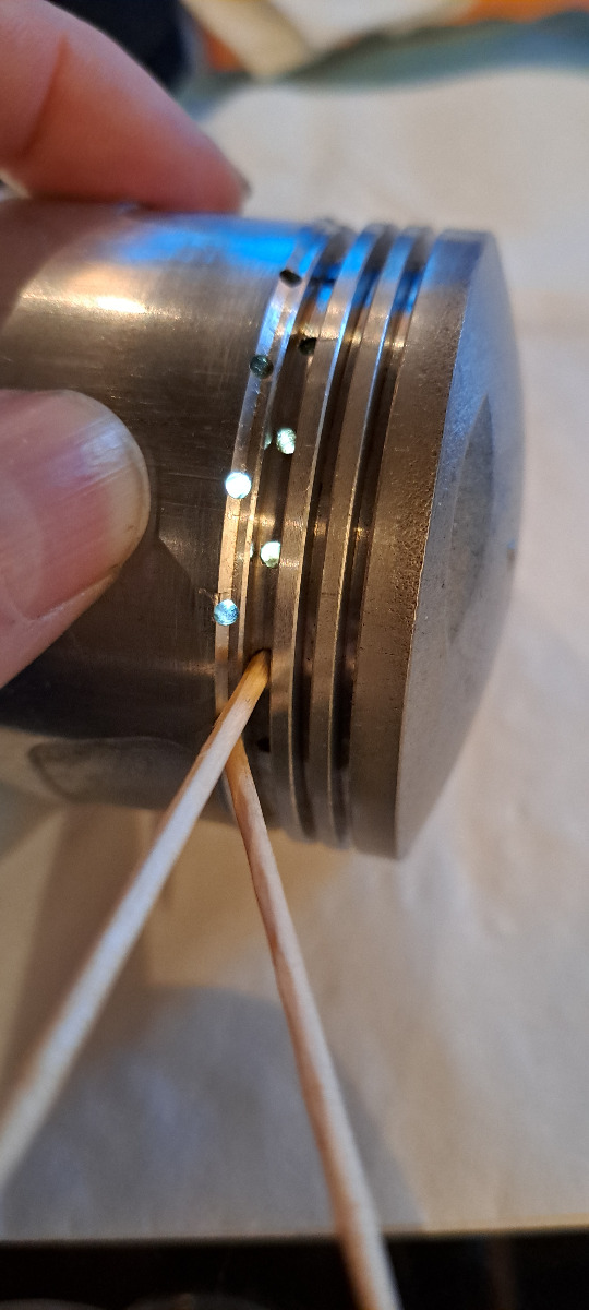 BTW, I'm not a professional mechanic. Just self taught, out of financal, need to fix my own stuff. So there are holes in my knowlage. (like the holes in the piston groves.) The Kawasaki service manual said to clean the carbon out of the groves but made no metion of the fact there were holes that needed to be cleaned.