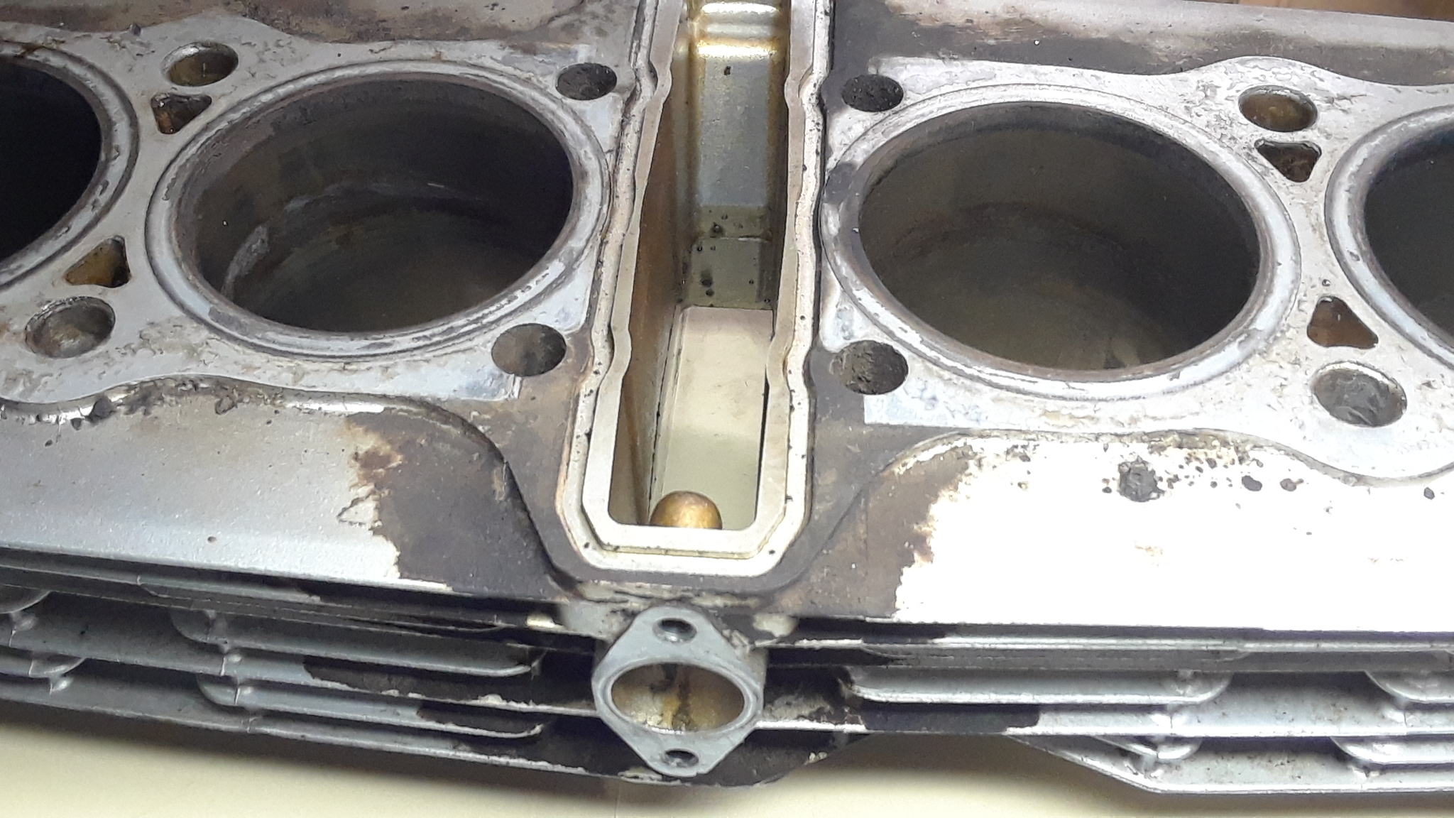 My new/old, potentially useless ZN1100 cylinder block has several un-cut vents, which likely contributed to the head gasket's demise directly above.