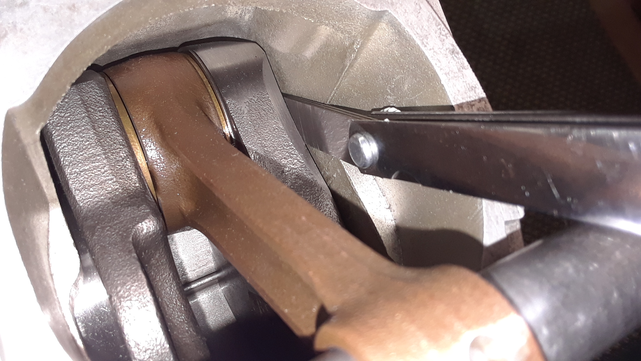 This measurement was easily obtained, and no side-to-side movement of the crankshaft could be detected.