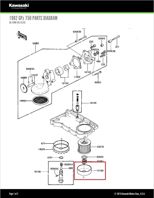 When I looked at the parts fish I noted that the oil filter cup on the Gpz900 is assembled facing upside down in my world. See pic.