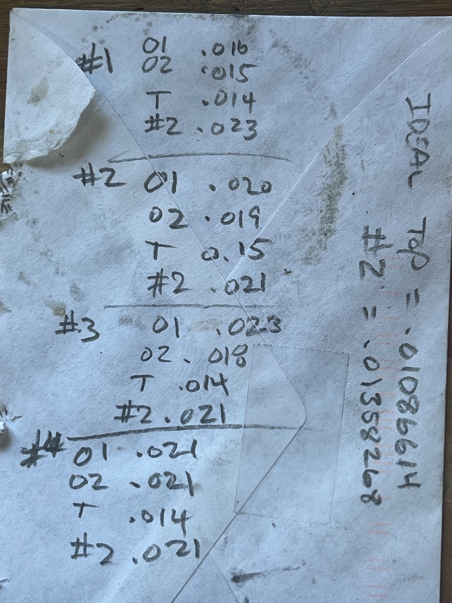 Ring gaps were measured, all were on the loose side. I read somewhere “if your end gaps are too loose, only you will know. If they are too tight everyone will know”. This is what I measured: