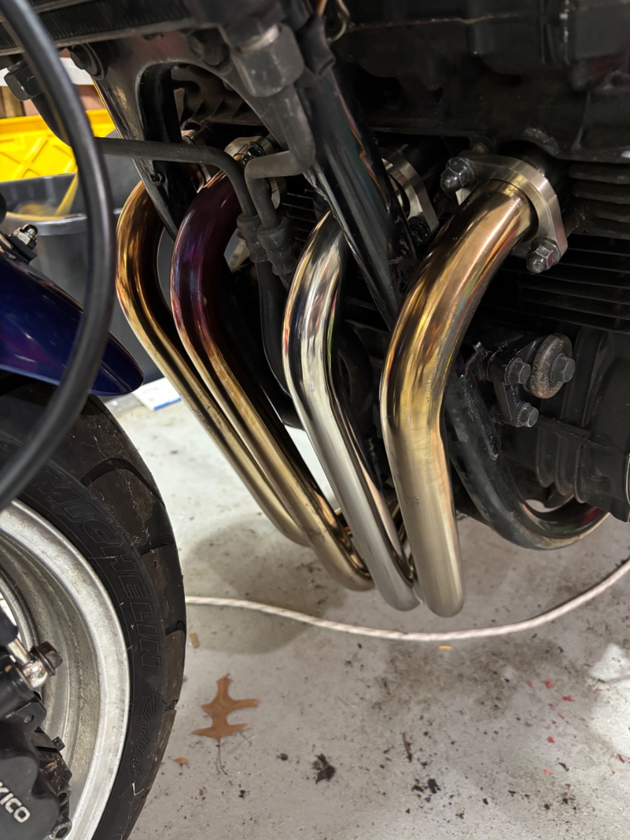 When I fire the bike up now, it takes a bit longer to turn over and cylinder 2 header is cool to the touch after running a few minutes, while cylinder 3 pipe will be glowing red at the bend. The outside cylinders seem fine.