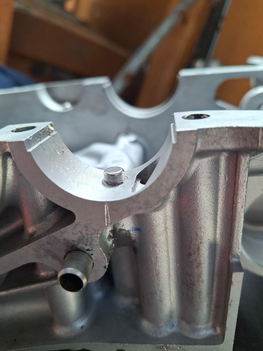 24 Oct 2024 15:19 - 24 Oct 2024 15:25Yes, new hole and dowel to the outboard edge on the same center as the flush pin. From the outer edge of case to the OD of flush pin its .348" so plenty of room to do such a thing (have bare 650 cases here)There is a very small oil supply hole in the oil galley spot. Any shift in placement of the race will starve it for oil.