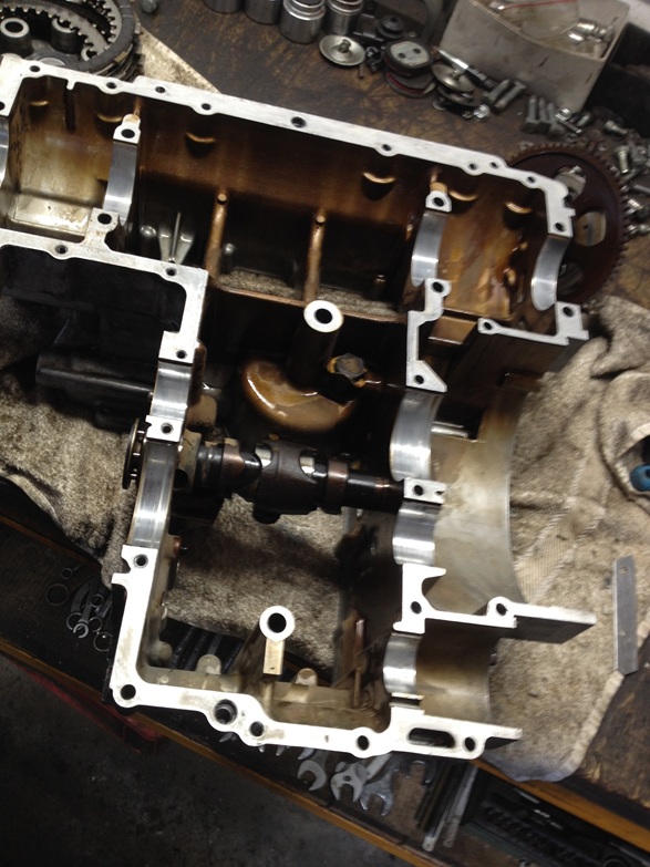 Then we separated the housing, removed the transmission mainshaft along with the clutch basket,( that was not too bad, but some torsion springs worn out, ) replaced it with a good spare part I had lying around, cleaned all the sealing surfaces, and reassembled everything. From experience, it still took many hours, cleaning all the threads by tapping amd all this cleaning stuff ....but tomorrow the engine should go back into the frame..., and than complete the outer engine with ign parts, and all, and reassamble the bike...