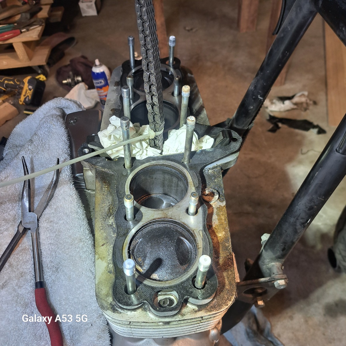 Cyl. block and cyl. head gasket surface looking very good, combustion chamber have a little carbon build up (use brass or nylon brush only for cleaning).