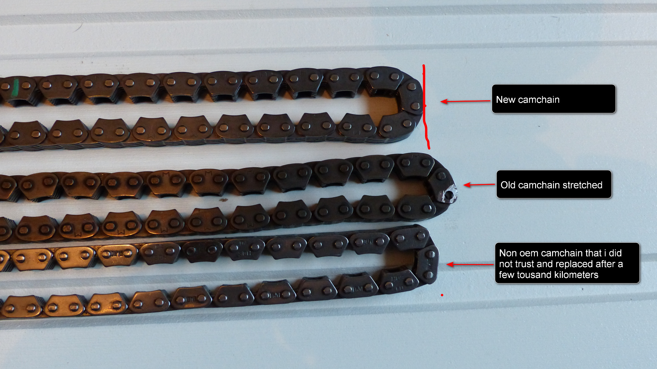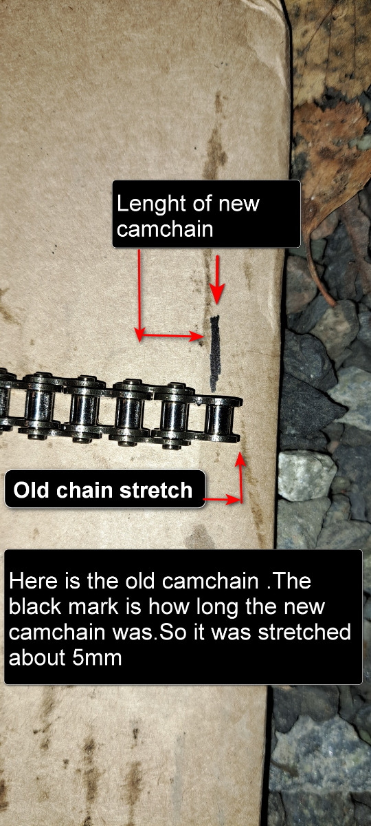 Yes that is true ,but if you look at my picks where i have compared old and new camchain they are longer to not just sloppy. Here is another camchain i replaced