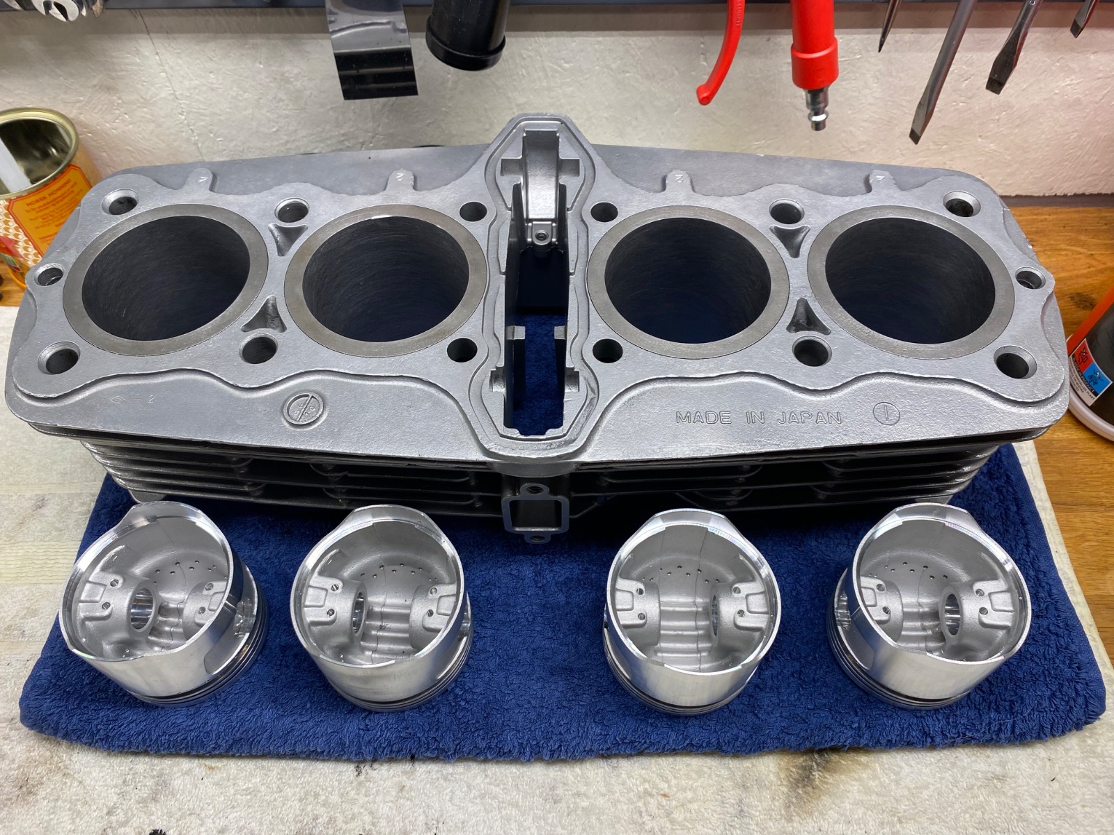 Experience with engine parts / piston kit from Cruzinimage in Japan (cast piston in oversized with the same compression ratio as OEM pistons). Have read both negative and positive feedback / opinions online. I take with me the positive from several forums where the piston kit has been used in many CBX1000, Kawasaki triple, Z1300 and several bikes where there are good experiences after many kilometers driven.