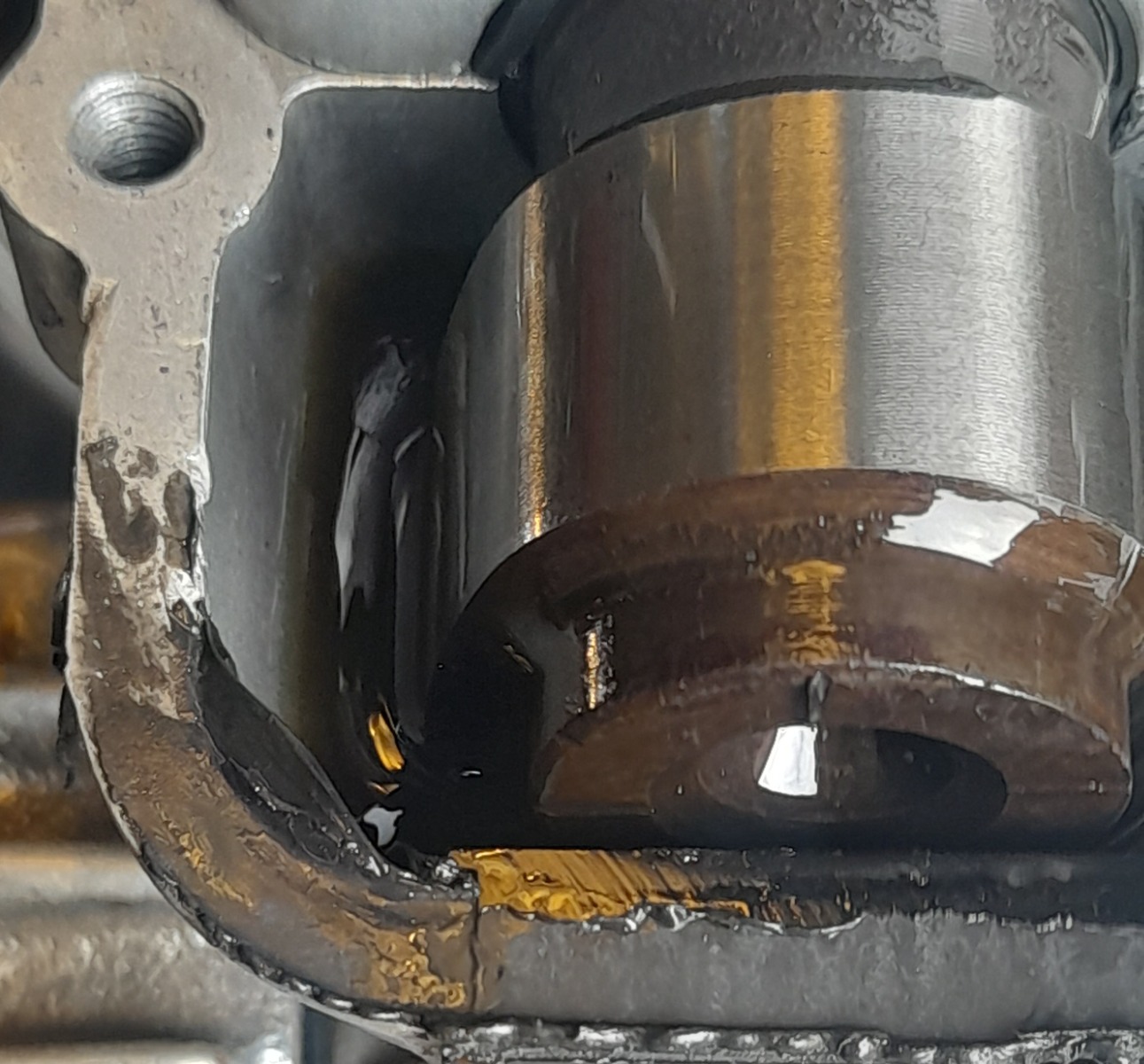 i removed the cams, the buckets, put oul on the srings, and put air pressure on the valve springs. Then it was possible to test if the oil hole was open from valve 3 to 4.