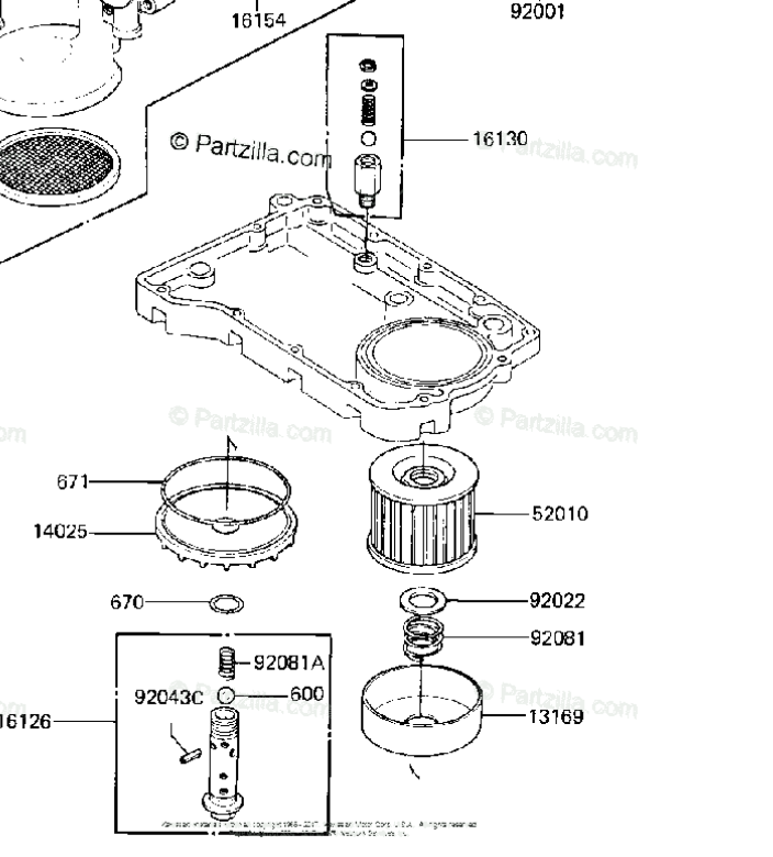 Tried a search, and it wasn’t helpful. Changed the oil in my 85 GPZ550, and I typically put everything back as it came out. The order from bottom to top is the cover, then a metal cup, flat washer, filter slides down into the cup then a spring.