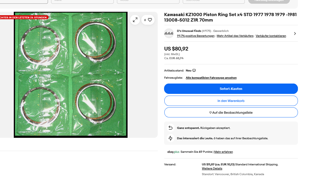 Or another proven option, NPR rings. I've been using them for years when reusing the stock cast ART pistons. If you Truly have a proper fitting ART 70mm KZ1000 supplied set of pistons rings would be Kawasaki Part # 13008-5012. NPR part number is 008-5012 or supplier K&L 11-2982. There are several vendors on Ebay that furnish 4-complete sets for around 100USD.