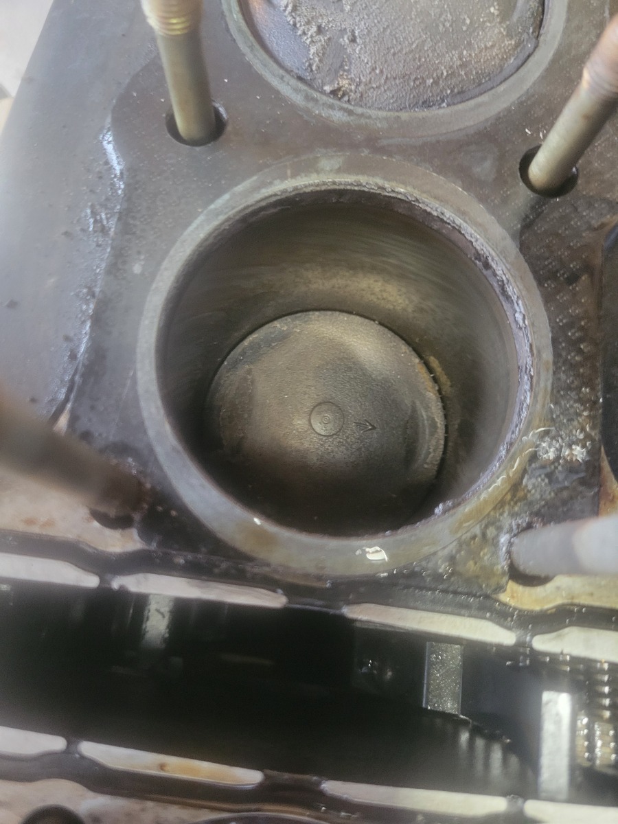 no the barrel cylinders all are beautifully nice and smooth no scratches nothing the bottom of the piston looks brand new or I'm on all of them but the problem is I'm trying to figure out why I got so much carbon buildup on top of the Pistons I don't have a picture of the valves under the head but you can imagine what they look like by looking at these pictures of the Pistons