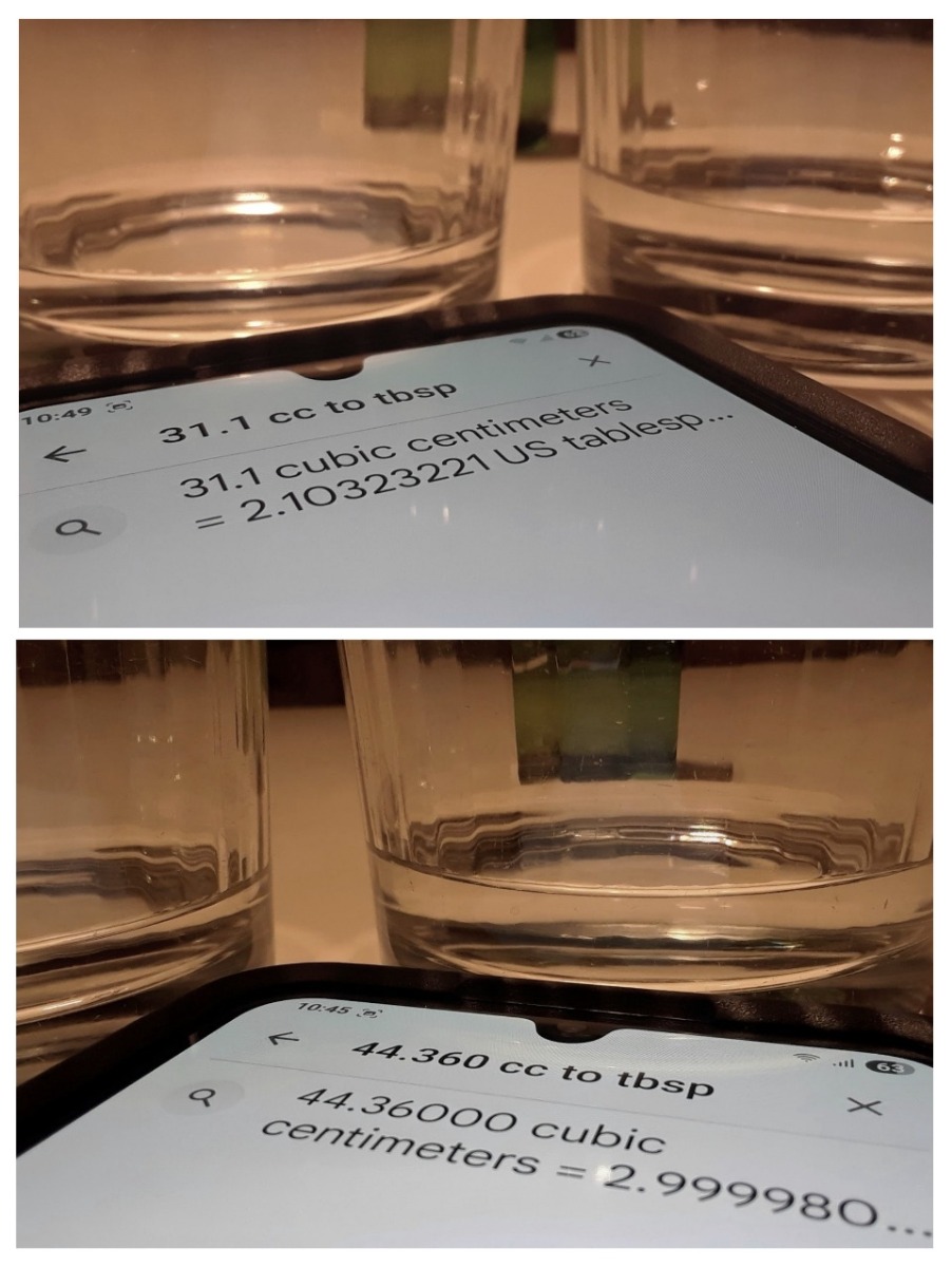 My previous volume calculations are off by roughly twelve percent, as confirmed with a digital scale.