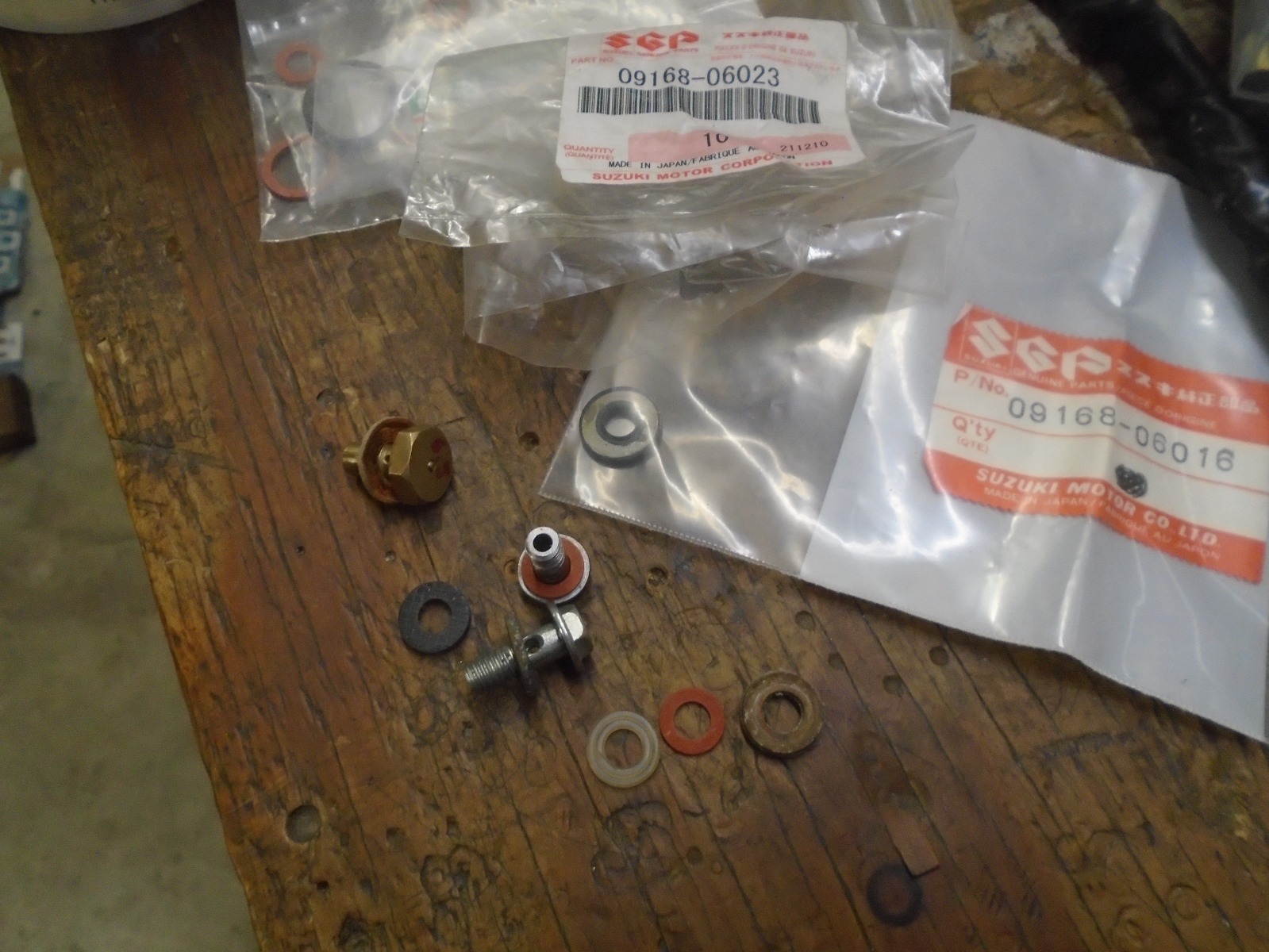 Because pictures speak better then babble, check-out the options and what i was talking about mentioning those "Strengthening sealing" bars molded into oring. Yours does not have that. Some pictures of the various options, red steel/fibre and plastic. But you can see fuel is not only possibly weeping from the tank threads, well look and it'll make sense. You could even go to your local lawnmower shop and buy a Honda GX bowl/drain gasket, still red steel M6 gasket you seek and it'll work just fine although thinner and a smaller OD then original. Just make sure you use a nice smooth flanged screw/bolt to whatever length required. I do a lot of the oil injection pumps on Suzuki/Kawasaki/Yamaha and that's why i mentioned the propensity of those plastic washers cracking in operation. I replace with what they call Stat-O-Seals but that's a whole different subject. There's Your ham sandwich, success be Yours!