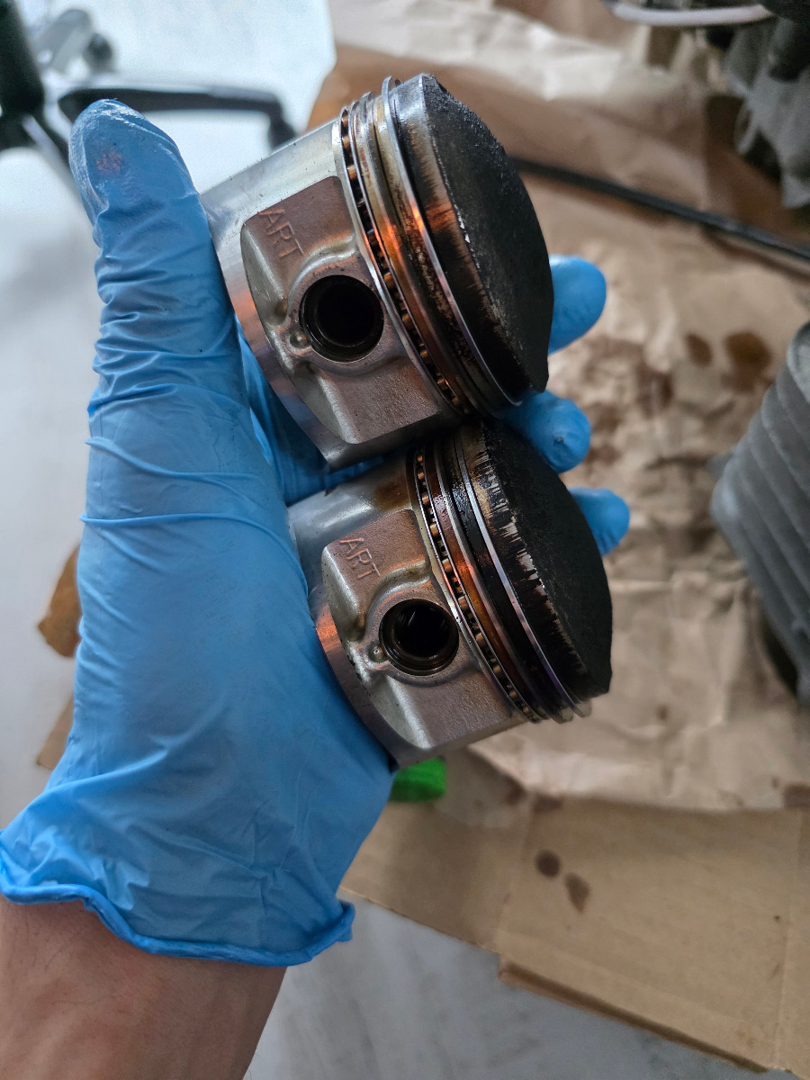 The first thing I did was buy the 440 cylinder and pistons on ebay. After figuring out a hone wasn't enough to clean up the rust I had the machine shop bore it out. New oversize piston kits from IMD were easy to find and under $100USD for the pair. A little more displacement means I can call it a 450 now so I'm thinking about new side cover badges once the swap is done. The head also got freshened up and some other things, I'll talk about that below.