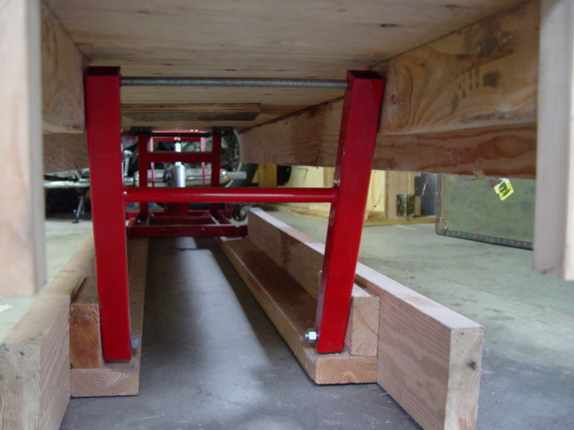 Made this with 2x4 and 3/4" plywood. Used scrap wood and may be 80-90 bucks in it for hinges, bolts, casters etc.Raise and lower it with old VW jack. Secure hinged legs with bolts when it is up. Move it around is easy with casters yet it is steady when casters are locked.